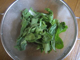 | ジャガイモ植え付け箇所の1回目耕耘。2022.04.10 11:53 | 今日の収穫。越冬白菜の新芽。おひたしにしていただきました。2022.04.10 12:40 |