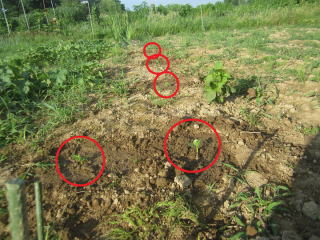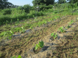 | これから数日、雨の天気予報。雑草取りしないと蔓延る事態。早朝の雑草取りとなった。 ツルムラサキを定植。恵みの雨となった。 |