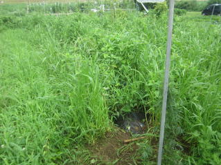 | ここ数日30度以上。雑草伸び伸びとしている。中々大変な作業だが、根気よく作業するしかない。 キュウリ、絶好調である。 |