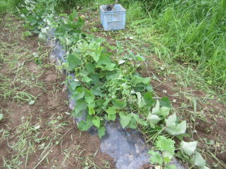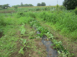 | サツマイモ雑草取り、作物順調、雑草それ以上。 | |