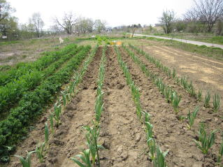 | ここ数日25度前後の猛暑?まるで初夏。 作物も伸びるが雑草たちもそれ以上に伸びる。気がかりだったニンニクの雑草取りを完了した。そしてニラ収穫。 |