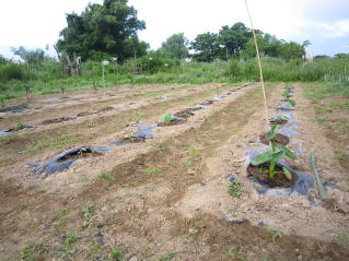 | サヤエンドウ種まきが遅かったのか、終盤を迎える? ここ数日の高温で、作物立が順調に大きくなってきた。管理も忙しくなる。 |