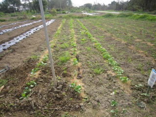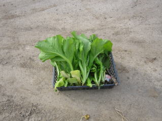 | 27日深夜から雨降りの天気予報。小さめであるが、タマネギ定植を決断。細かったので、時間がかかった。 五月菜の間引き。薄めに棚蒔きしたが、やはり間引きが必要。間引き後、鶏糞を投与した。 青菜のお試し収穫。まだ、緑濃くない。 |