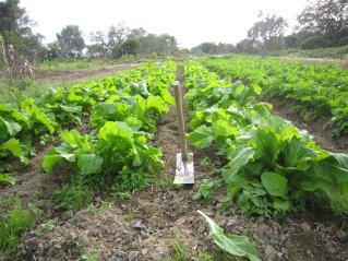 | タマネギ定植、五月菜間引き、ニンニク雑草取り。青菜お試し収穫。 | |