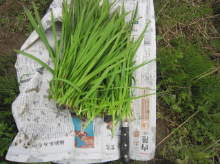 | ニラ、生育順調。2025.05.06 10:57 | ニラ収穫。2025.05.06 10:59 |