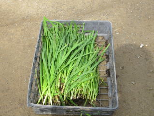 | ニラ、まだ食べられようだ。2025.05.18 9:02 | 収穫したニラ。2025.05.18 9:09 |