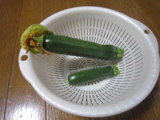 | ズッキーニ全体。2025.06.19 17:57 | 収穫したズッキーニの。2025.06.19 19:54 |