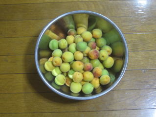 | 杏梅の収穫。調理方法が分からないので、砂糖煮して杏シロップを作った。炭酸水で割ってジュースにしていただいた。 連日の晴天。連日、上呂で水かをしている |