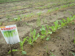 | 大根派が大きなってきた。間引きと座沿おう取りを待っている。2025.09.20 9:58 | 芽出しがそろってきた。2025.09.20 9:59 |