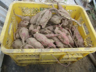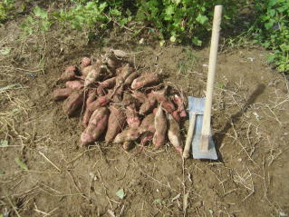 | ニンニク上塚箇所確保のため、サツマイモ全部収穫した。今年のサツマイモ、予想以上に生育が良かった。ネズミの食害も予想より少ない。 秘伝豆のお試し収穫。まだ少し早いようだ。 |