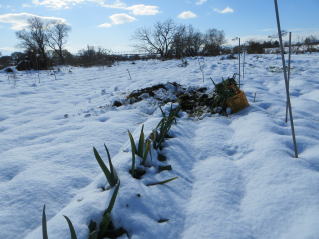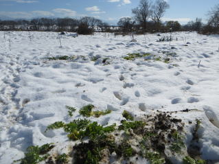 | 今回の雪、本格的な積雪となった。 今シーズン最後の収穫、雪中大根、ネギ収穫。 |