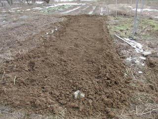 ミニ耕耘機で耕しレーキをかけました。 2011.04.02 14:54 撮影