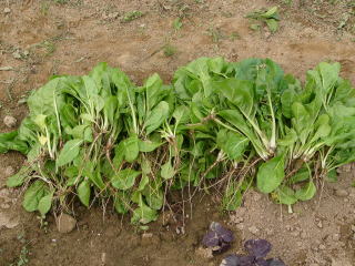 間引いたふだんそう。おひたし、みそ汁の具とないます。 2007.06.24 作業撮影