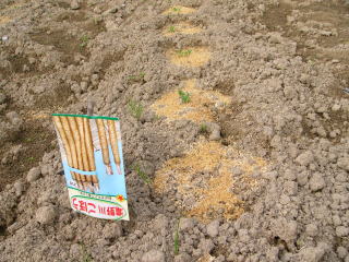ゴボウ、完全な失敗です。発芽はしましたが、大きくならいの