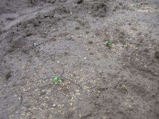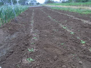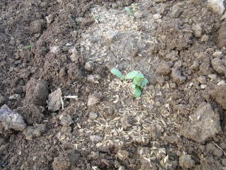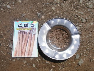 ゴボウの発芽確認です。昨年もここまで良かったのですが、間引きしたら生長が止まってしまいました。今年は間引きしないで