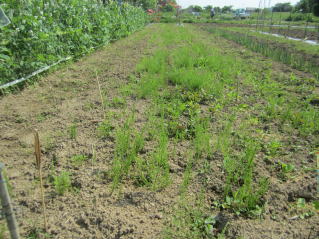 種が小さいので厚く蒔きがちとなります。こうした場合、間引きが絶対必要です。間引きにより個体を大きくします。