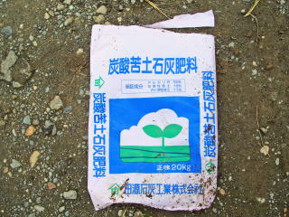 蒔いた石灰。1袋500円程度でした。 11:00撮影