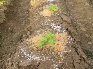 間引き後、顆粒状肥料を与えました。