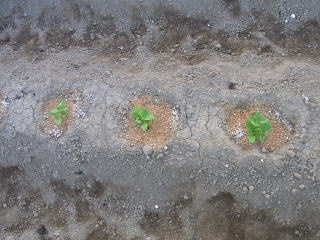 苗定植の仕方、まずまずの成果です。1袋400円の種からこん
