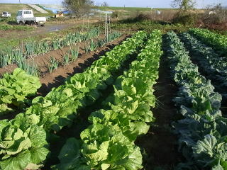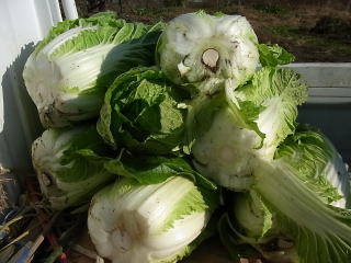 植え付け間隔が小さいので小振りの白菜に成りました。また、