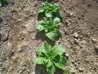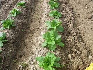 まだ小さいですがシッカリ活き付いています。根切り虫の被害もいけていません。1畝約25個の白菜です。