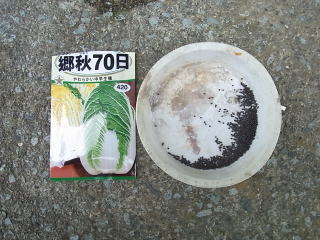種蒔き完了です。70日で収穫と種袋に書かれていました。ちなみに下ポットはキャベツです。2013.08.29 13:52 撮影