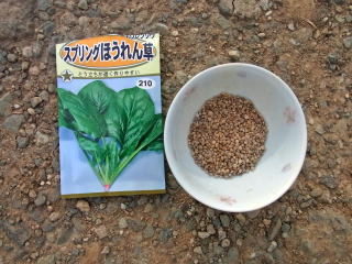 A密着しないように10平方センチあたり10粒弱蒔くようにしています。厚く蒔くと間引きしなければならず、また、間引きしないと小さなほうれん草となり、収穫しづらくなります。チョットしたこつが必要です。