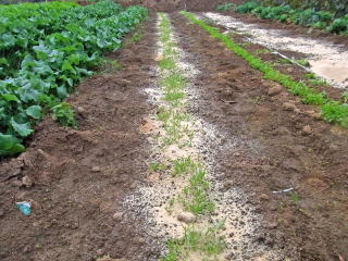 スジ巻きです。蒔き方は大根と同じです。
