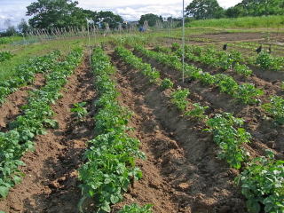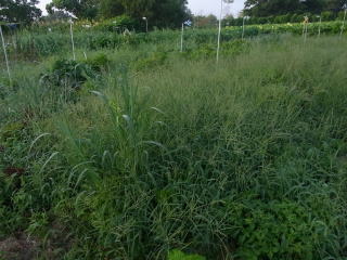 これがジャガイモ畑?雑草がノビノビと生い茂っています。