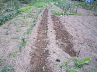 | キャベツはホームセンターで苗として売っているようですが1本70円〜80円くらいで明らかにコスト高。おらホでは昨年から萎え作りに挑戦しました。秋に種を蒔いて苗を作り、定植します。収穫は翌年6月頃です。 種まき 蒔き時 例年9月1日前後にしている。人によってはポットに種を蒔き適当な大きさになってから移植するが、おらホでは家庭菜園内で苗を作ってきた。 蒔き方 @良く耕した地面に高さ15センチ、幅45センチほどの床を作ります。 Aこの床に深さ3センチほどの溝を切ります。 Bここに1粒づつ種を筋蒔き風に置いていきます。この時まだ土を上掛けしません。 C買い求めた種の残り具合を確かめ、残っていたら適当に蒔き、足りないようだっらB種を拾い集め適宜蒔いていきます。 D土をかけてからその上に籾殻を籾殻を蒔きます。 ポイント 出来るだけ均等に薄く蒔き、間引きしないように心がけています。 手入れ 肥料 芽が出たら顆粒状肥料、尿素を蒔いています。 雑草取り 雑草取りはマメにしなければなりません。 定植 準備作業 @良く耕した地面に尿素、油かすなど均等に降り、更に良く耕し数日間放置しておきます。 定植 @穴開け器で20〜30センチ間隔となるようにとなるように穴を開けていきます。 A1本ずつ苗を植えていきます。 定植後の手入れ 肥料 顆粒状肥料、尿素を2回ほど投入しています。おらホでいうサクヅカゲです。 収穫 例年6月中下旬頃でしょうか。適当な大きさのものから適宜収穫していきます。 |
