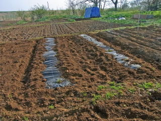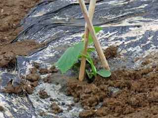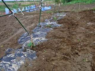 まずはマルチ張りです。風のない早朝に作業完了しました。