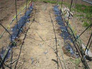 | 芽欠きをしながらの、イボ竹支柱立てです。2019.05.19 9:05 | |||||||||||||||||||||||||||