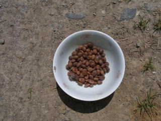 お盆に仏壇に供える夏豆の栽培補方である。若芽が野鳩に突かれるので、ネットで内で発芽させある程度大きくなってから定植している。