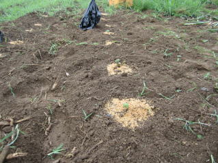 A豆同士ぶつからないようにバラバラと蒔きます。