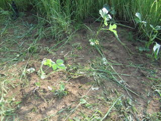 お盆に仏壇に供える夏豆の栽培補方である。若芽が野鳩に突かれるので、ネットで内で発芽させある程度大きくなってから定植している。
