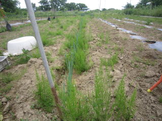 夏には食べられますが、秋までそのままにし「秋ネギ」として11月末に収穫し、冬用として保存も可能で重宝しています。ネギは種を蒔いて「秋ネギ」として定植もしていますが、「夏ネギ」は地元のホームセンターから250本くらいで約1000円で購入し定植しています。