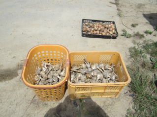 収穫したニンニクの芽。2021.06.06 17:00 |