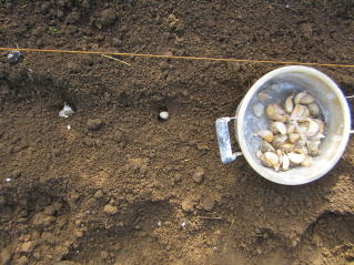 @10センチ間隔で仮置きし、数センチ程度の土をかけました。
