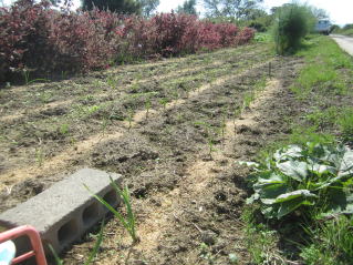 | 雪解け直後のニンニク。雑草を取り追肥していく作業が待っている。2021.03.19 5:53 |