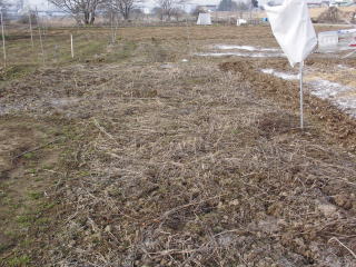 枯れ草を除去、土を掘り返して鶏糞を蒔きました。