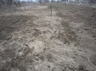 枯れ草を取り除き、鶏糞を蒔きました。 2018.03.21