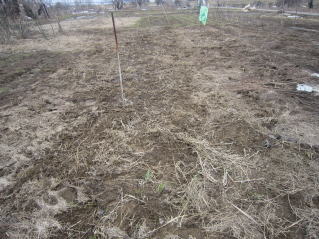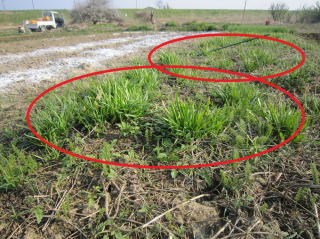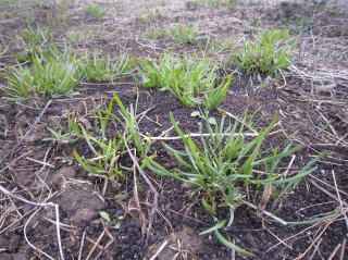 | 雪解け直後のニラです。昨年の枯れ草でよくわかりません。2018.03.21 |