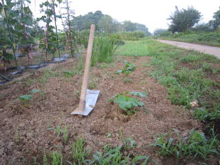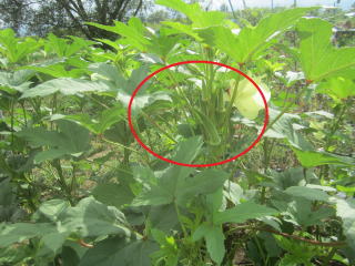 | 雑草取りを待つオクラ。2025.08.30 7:48 |