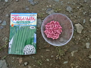 種はツル無しササギに決めている。ツルを這わせる支柱立てが面倒くさいからだ。