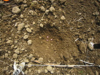 窪みに3〜4粒の種を仮置きしました。 2018.05.06 9:16 |