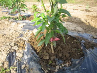 | いつの間にか花が咲きだしたピーマン。2025.09.20 9:45. |