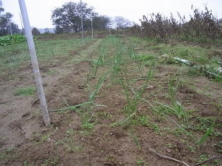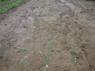 小雨の中のタマネギ。確かに活き付いています。雪降るまでには