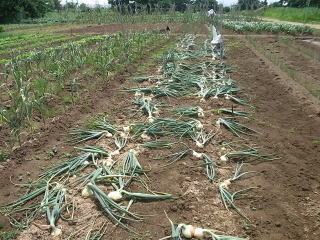 収穫直前のタマネギが無惨な姿に。7割が腐れていました。