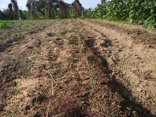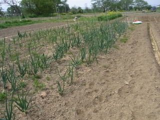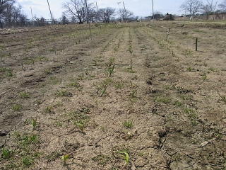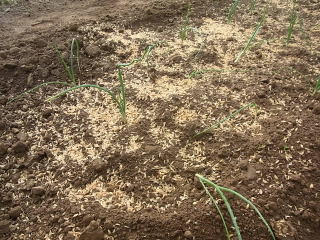タマネギ、無事越冬していました。消滅している苗もありましたが、かなりの本数が残っていますので今年は期待できそうです。