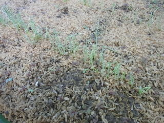 元肥代わりに米糠を蒔きました。この後耕耘します。